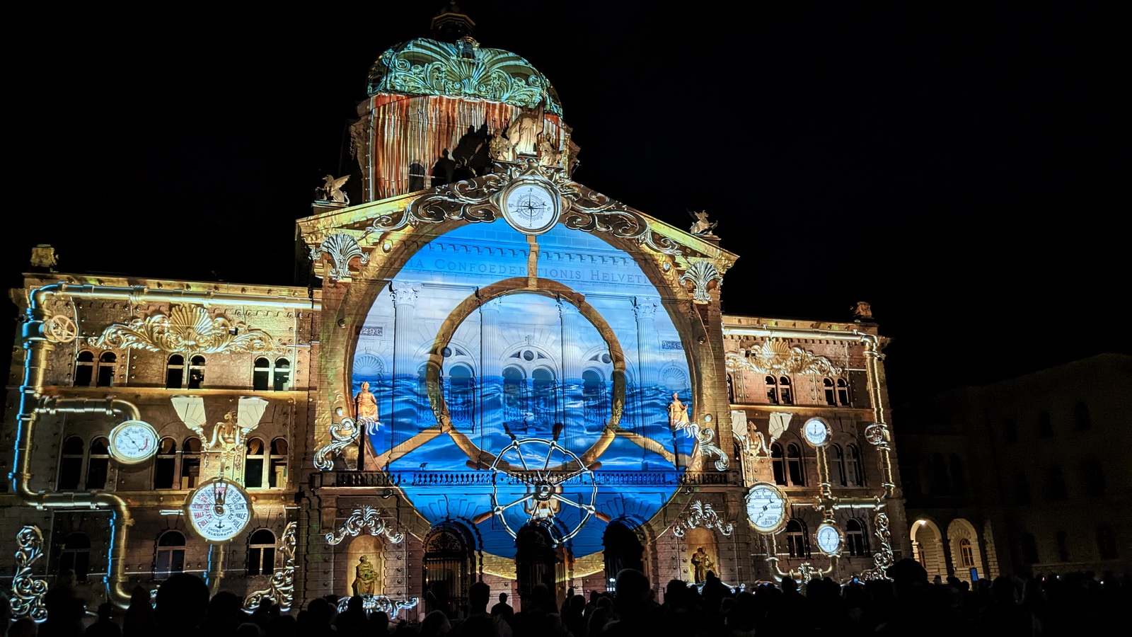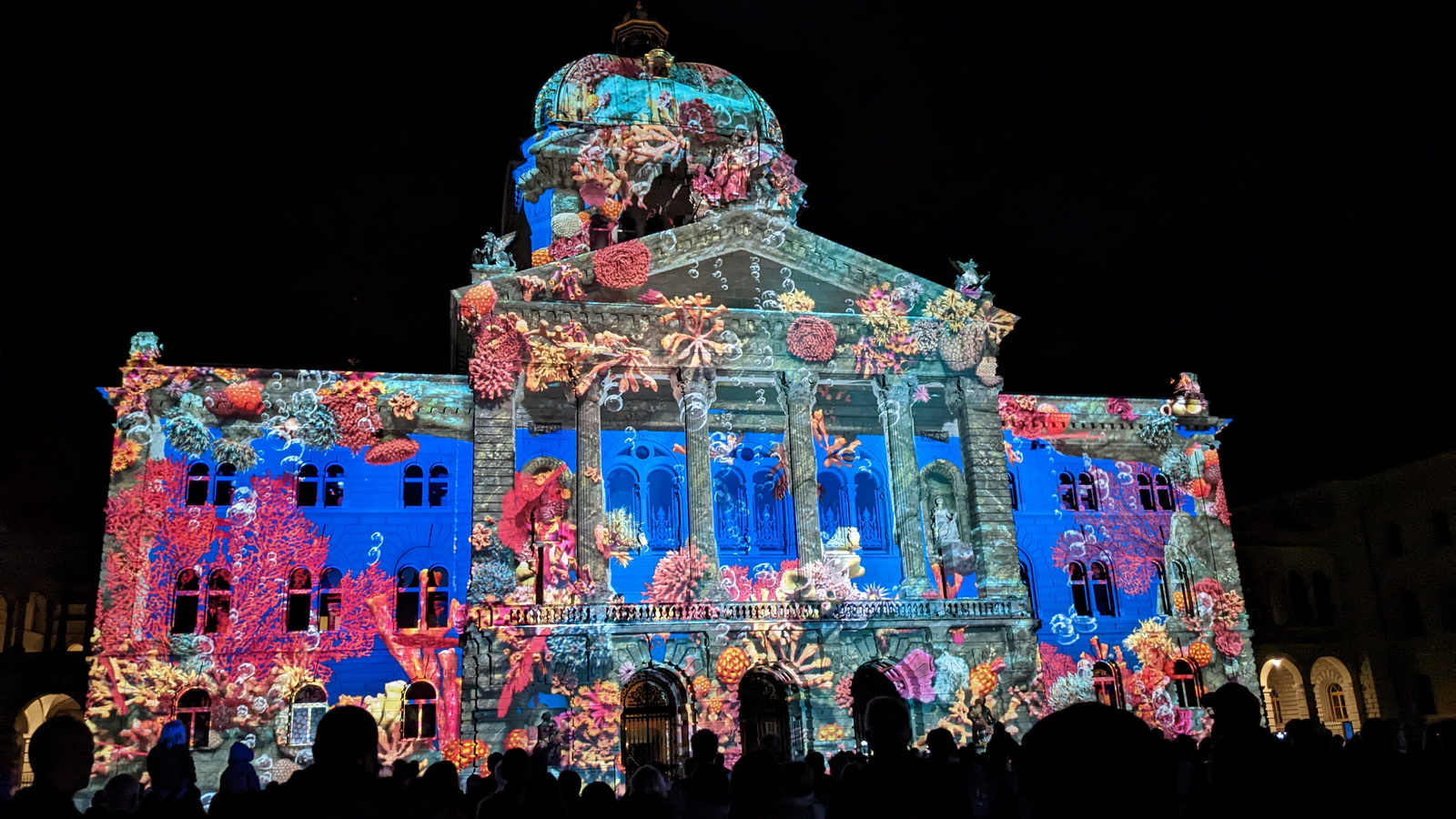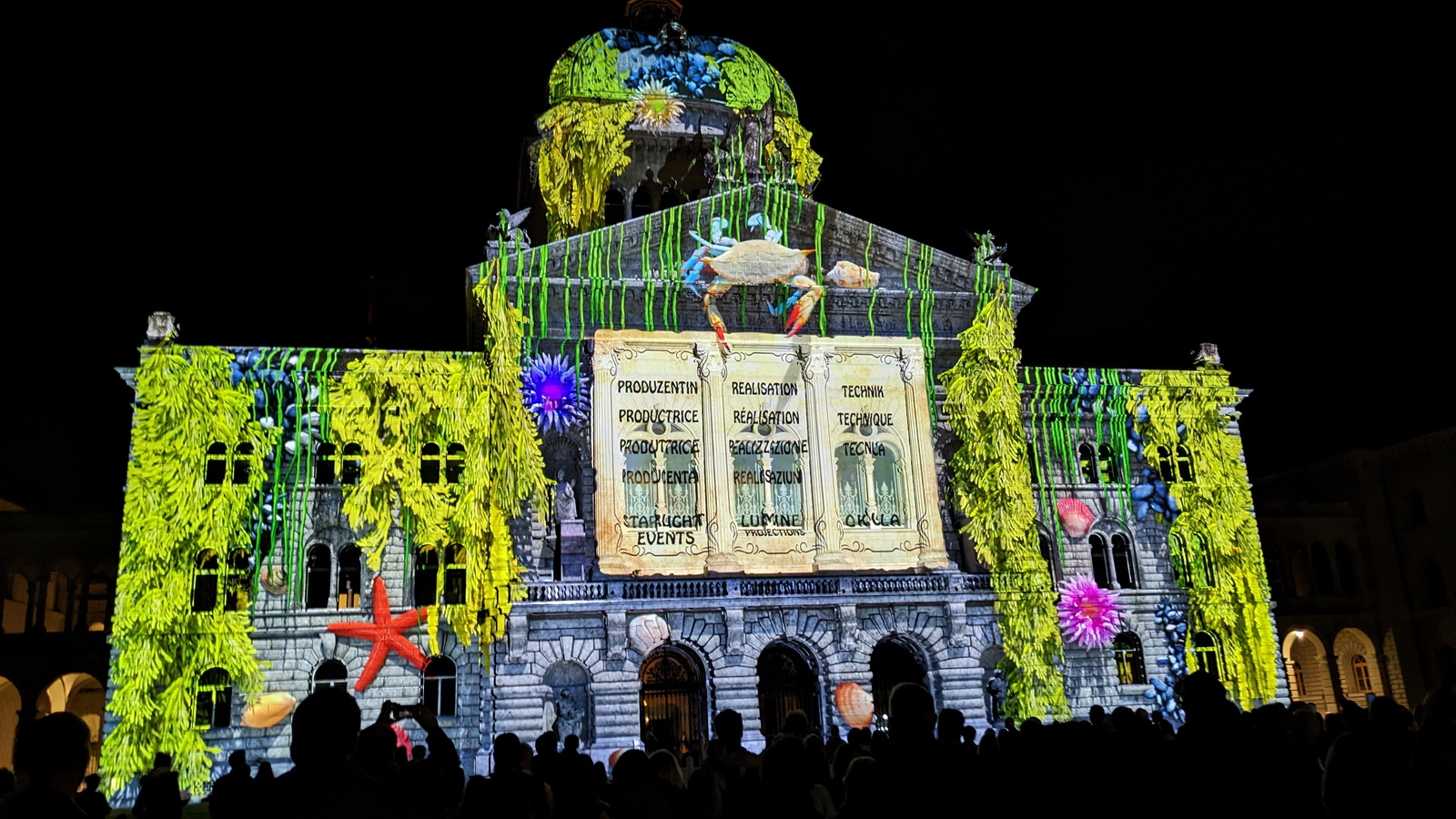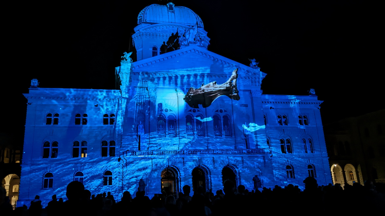A 20h, alors que la nuit était bien installée, nous étions quelques milliers de spectateurs debout sur la place devant le Palais Fédéral pour assister à la projection de la vidéo «Point Némo» sur la façade. Un moment grandiose d’images et musiques. Ces projections sont des évènements annuels à ne pas manquer !