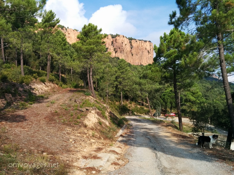 Le lendemain matin, dimanche, nous sommes allées encore plus haut, sur un chemin jaune de caillasse sèche – les pierres de cette région – bordé de chênes liège, d’arbousiers, de lavande sauvage, de bruyères et autres plantes, au pied de montagnes rouges aux flancs verticaux. Au fur et à mesure que nous marchions, des odeurs étranges, enlevantes, sucrées ou surettes nous ont chatouillé le nez.
